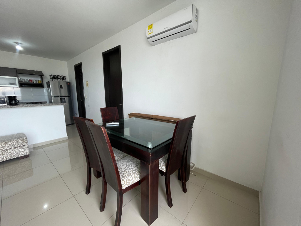 Apartaestudio de 65 m² que ofrece una distribución funcional y confortable, compuesto por sala, comedor, cocina, área de labores, una amplia habitación con closet y baño privado, además de un balcón con vista hacia la calle. El edificio complementa su propuesta con vigilancia 24 horas, piscina y parqueadero privado, garantizando seguridad, comodidad y bienestar en un entorno residencial privilegiado.