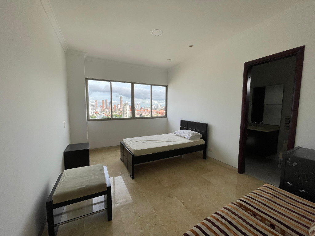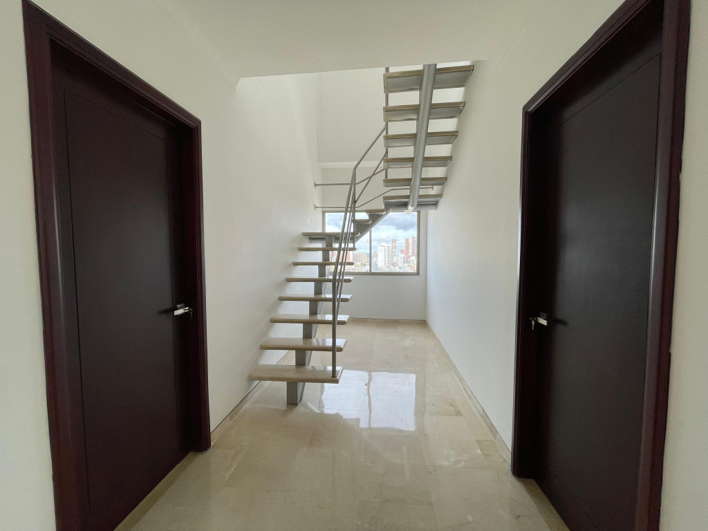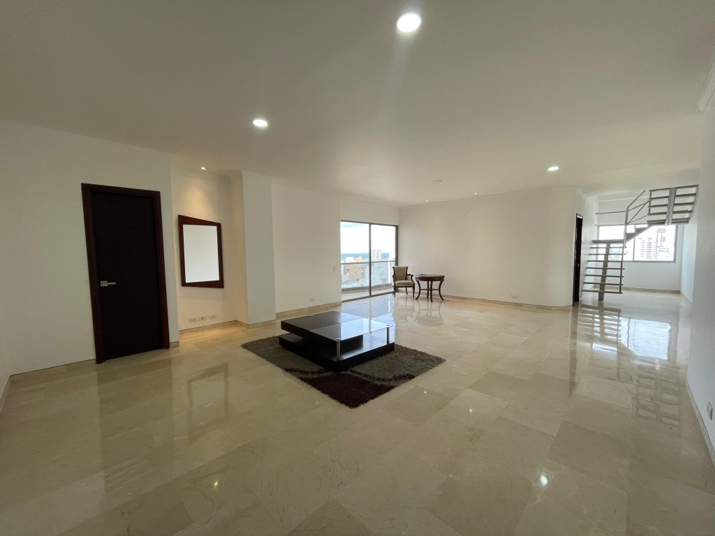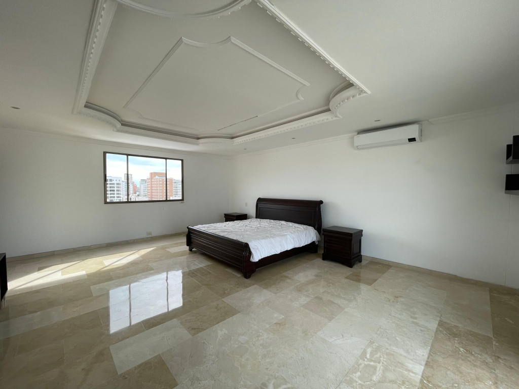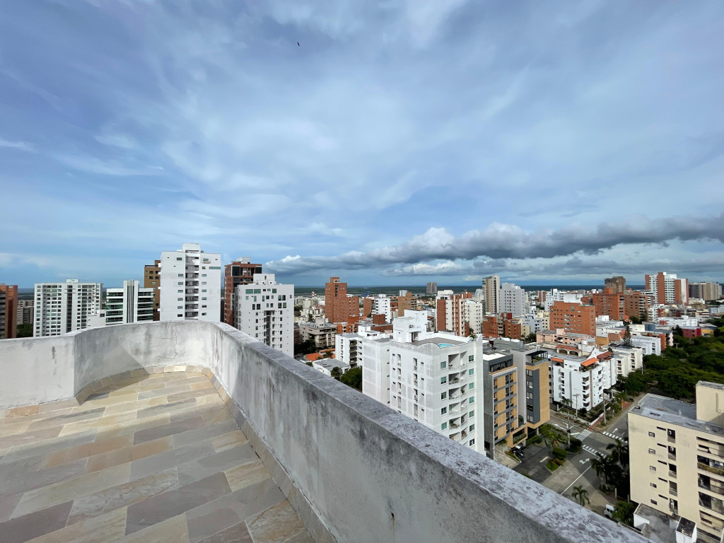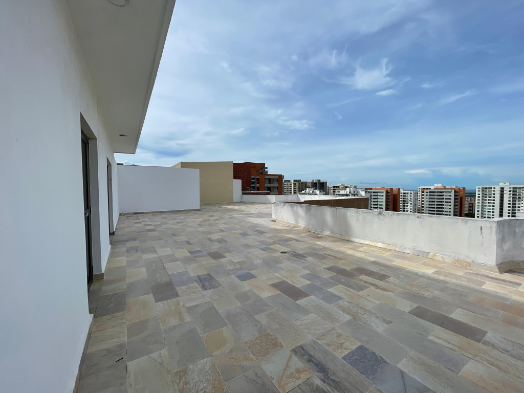 Penthouse dúplex con vista al río, diseñado para quienes buscan amplitud, confort y exclusividad. En su primer nivel ofrece una elegante puerta de acceso doble y blindada, sala doble con techos de gran altura, comedor independiente, pisos en mármol, baño social, cocina funcional con área de labores y alcoba de servicio con baño, además de un acogedor balcón. En el segundo nivel se encuentran tres habitaciones con baño y walking closet, la principal con tina y doble lavamanos, y una impresionante terraza de 180 m² con vista panorámica y posibilidad de construcción adicional. El edificio brinda excelentes amenidades como piscina para adultos y niños, gimnasio, zona BBQ, parque infantil, salón social, elegante lobby con recepción, dos ascensores y parqueaderos para visitantes. Su ubicación privilegiada al norte de la ciudad, cerca de los centros comerciales Buenavista, Mall Plaza y Plaza del Parque, así como de supermercados, restaurantes y parques, garantiza comodidad y un entorno residencial de alto nivel.