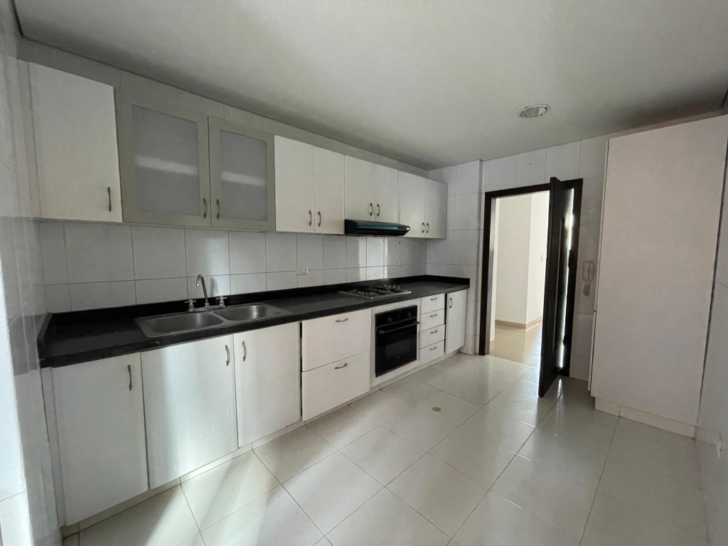 Apartamento de 137 m² con una excelente distribución que integra una sala acogedora, comedor, zona de televisión, baño social y un balcón ideal para disfrutar del entorno. La cocina cerrada se complementa con área de labores y cuarto y baño de servicio. Dispone de tres habitaciones: la principal con baño privado y walking closet, y las auxiliares con closet y baño compartido. Incluye dos garajes ubicados uno al lado del otro y parqueadero para visitantes. El edificio ofrece vigilancia 24 horas, salón social y ascensor, en una ubicación estratégica cerca de centros comerciales, restaurantes, colegios y farmacias.