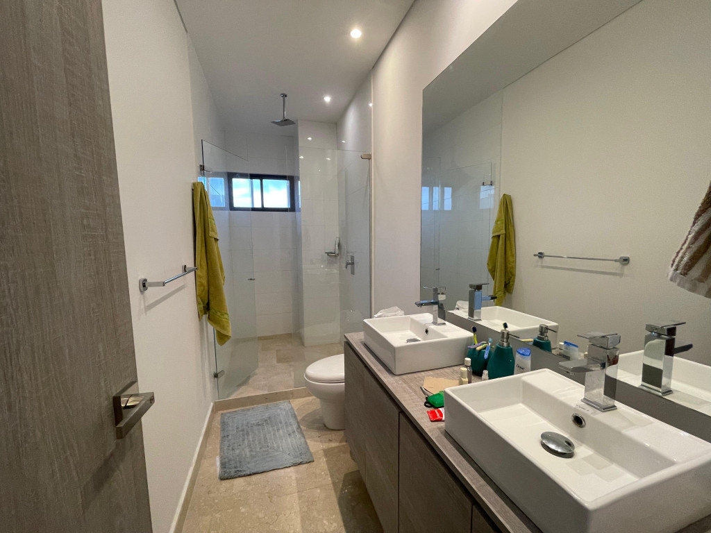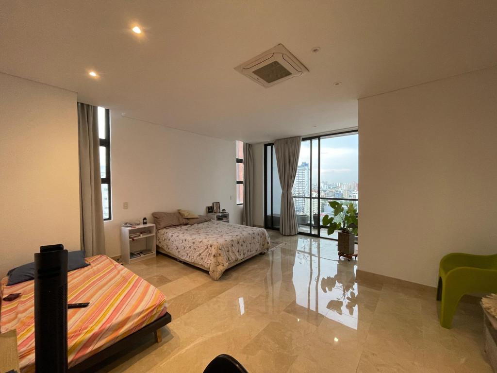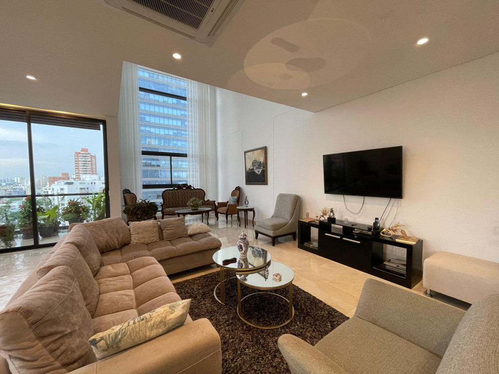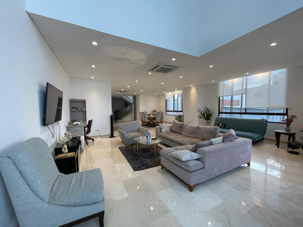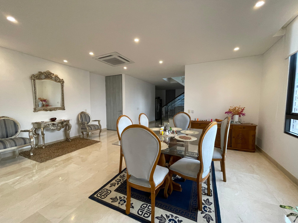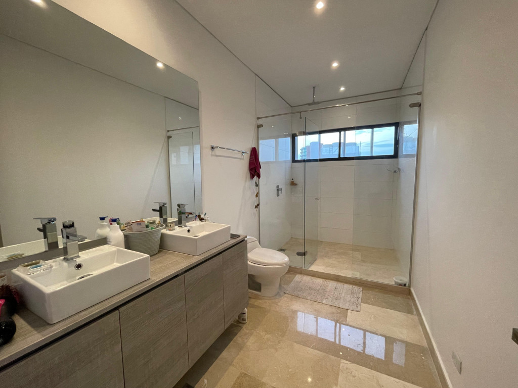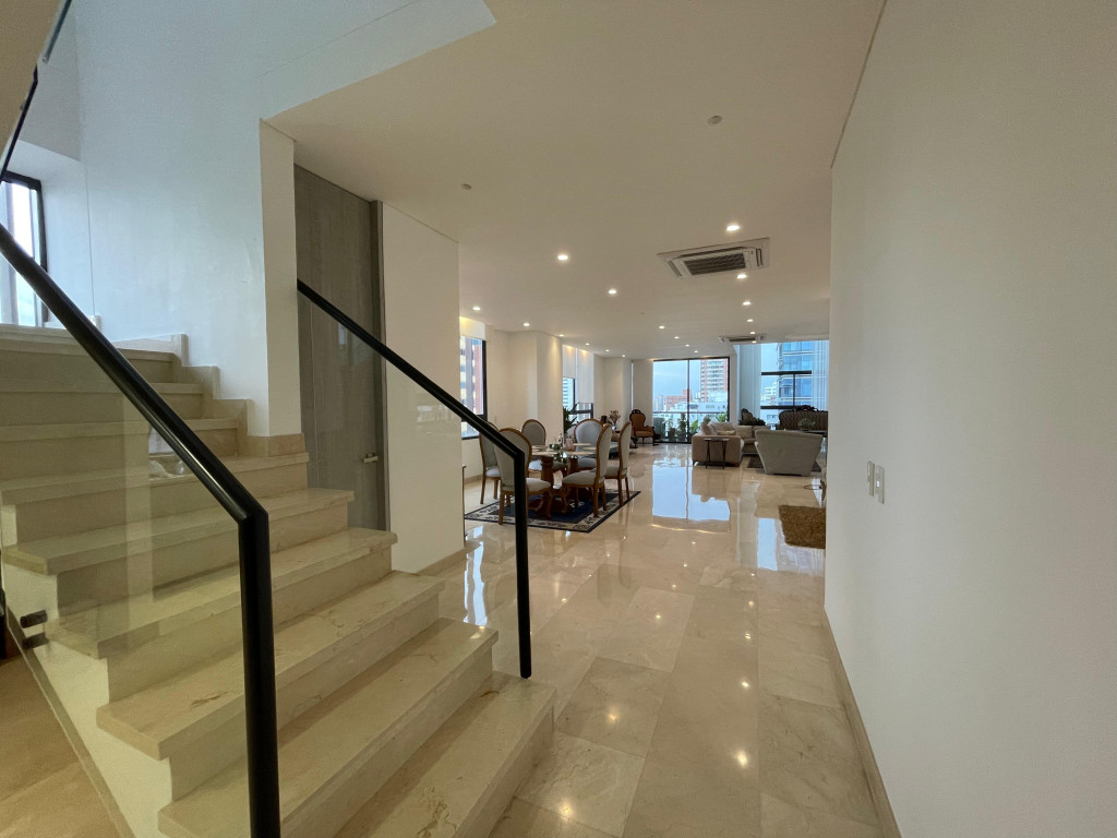 Penthouse dúplex en venta que combina amplitud, diseño y confort en cada uno de sus espacios. En su primer nivel ofrece una elegante sala principal y una segunda área de sala con imponente doble altura, comedor independiente y un balcón con vista hacia la calle que aporta frescura y luminosidad. La cocina abierta se integra perfectamente con el área social, acompañada de una amplia zona de labores, cuarto y baño de servicio. En el segundo nivel se encuentran las cuatro habitaciones, todas con baño privado; la principal y una habitación adicional disponen de walking closet, mientras que las otras dos cuentan con closet empotrado. Este nivel puede ser accedido directamente mediante el ascensor con llave privada, brindando comodidad. El edificio ofrece completas zonas sociales con vigilancia 24 horas, salón social, gimnasio, piscina para adultos y niños, parque infantil y una terraza ideal para disfrutar momentos en familia con zona para asados.
